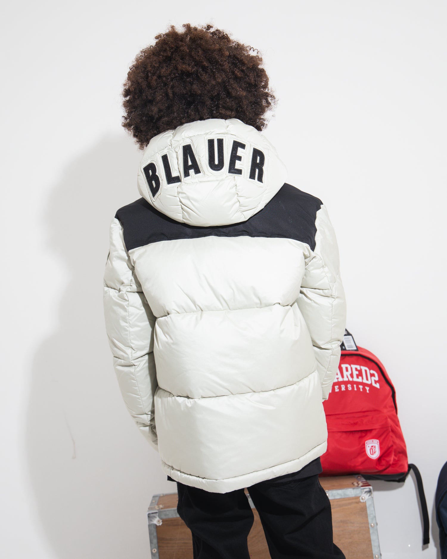 Scopri il giubbino Blauer Kids beige per bambini, un piumino caldo e idrorepellente perfetto per le giornate più fredde. Realizzato in nylon lucido e dotato di dettagli in tessuto tecnico taslan a contrasto sulle spalle, il giubbino è imbottito con ovatta Sorona® Aura per un calore leggero e confortevole. Il cappuccio fisso con ricamo Blauer aggiunge un tocco distintivo al look. Le tasche con zip nascosta e le tasche interne con velcro offrono praticità e sicurezza, mentre il fondo manica con elastico e la coulisse sul fondo permettono una vestibilità personalizzata. Con la chiusura con zip nascosta e il passante con logo, questo giubbino è l'ideale per un look sportivo e alla moda, mantenendo comfort e protezione per i più piccoli.