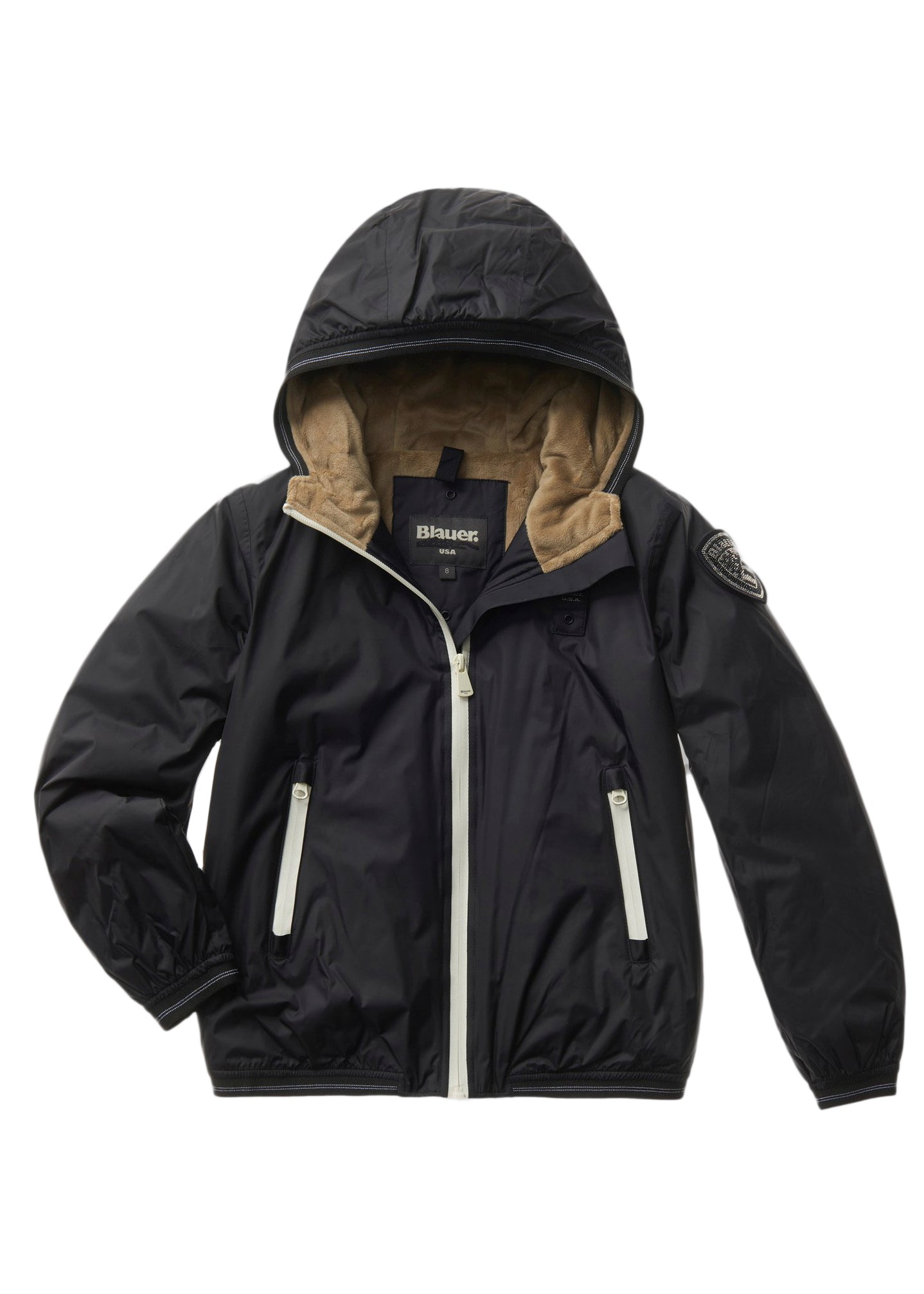 Blauer Kids Giubbino Liscio Nero con Interno in Pelliccia per Bambine