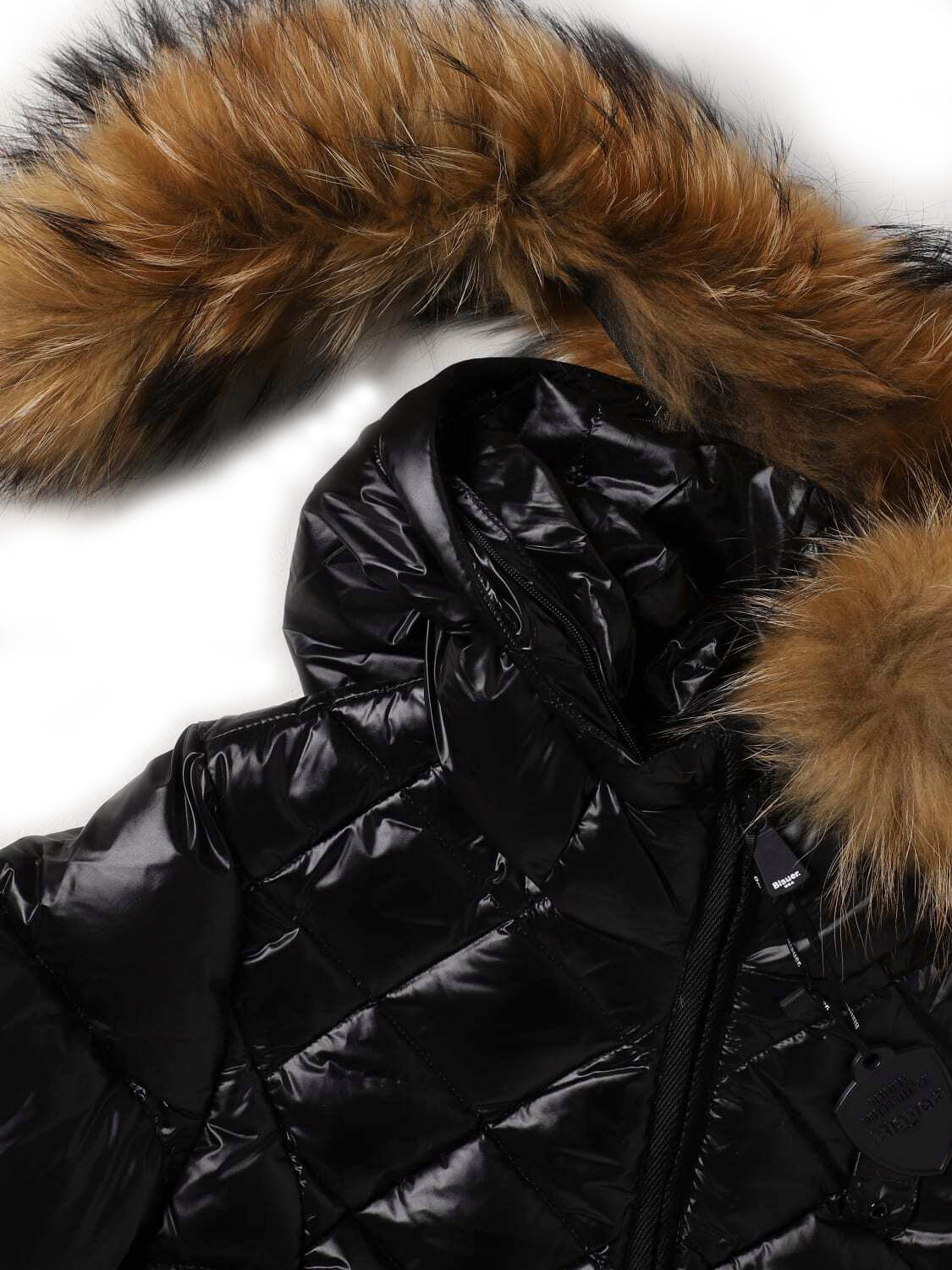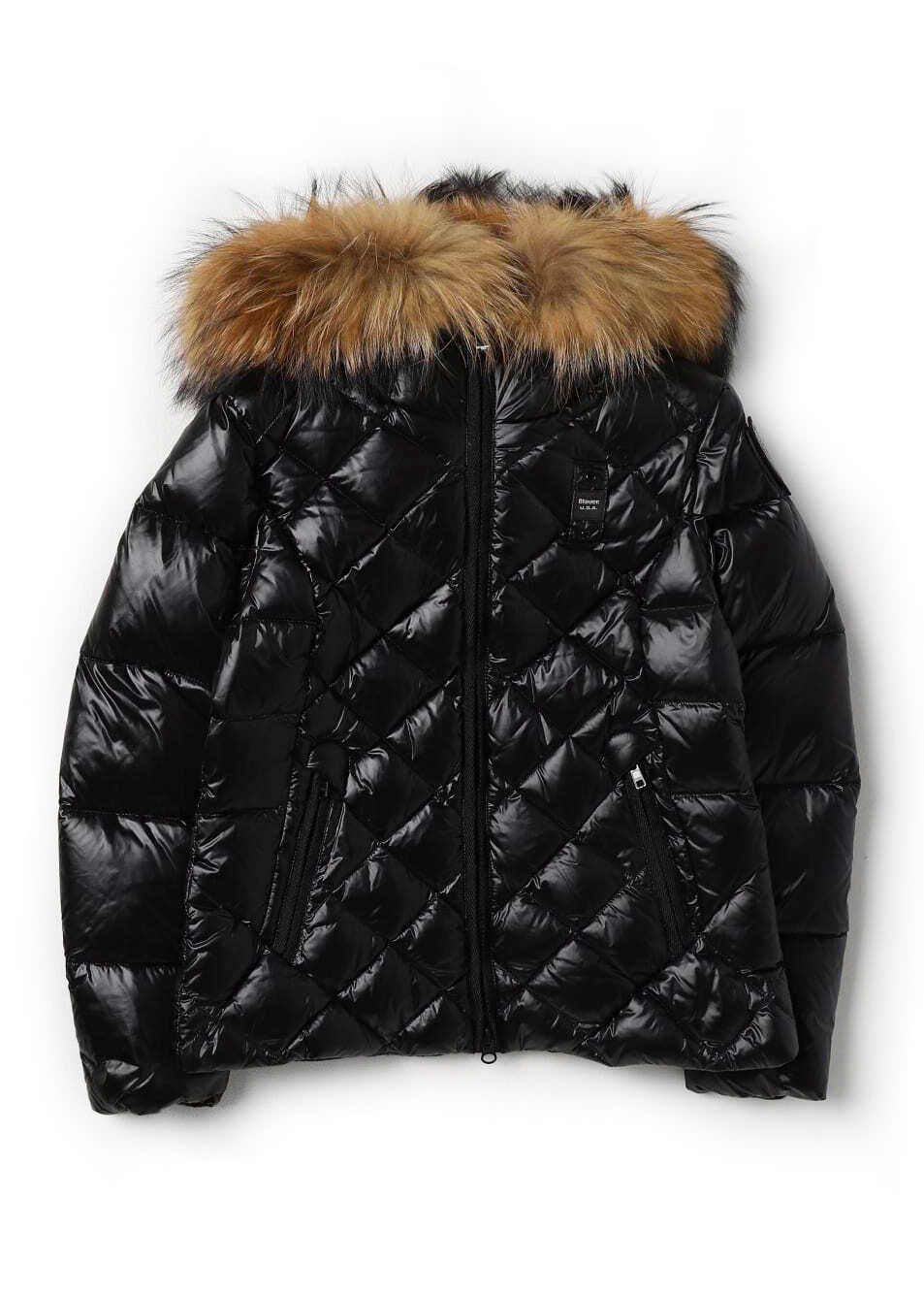 Blauer Kids Giubbino Nero con Imbotittura Asimettrica e Vera Pelliccia