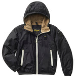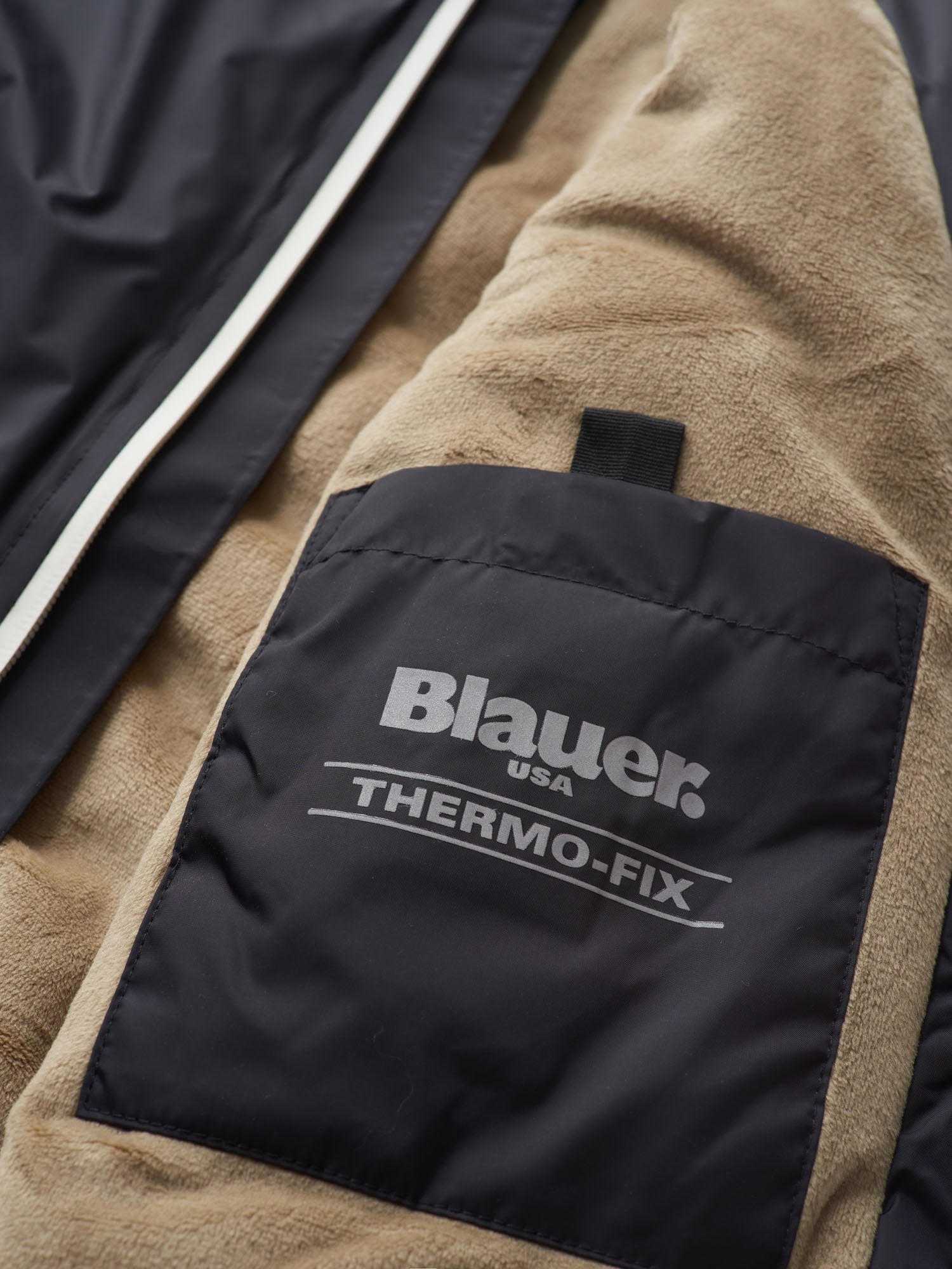 Caratteristico passante Blauer cucito sul petto a sinistra e patch Blauer nella manica sinistra.