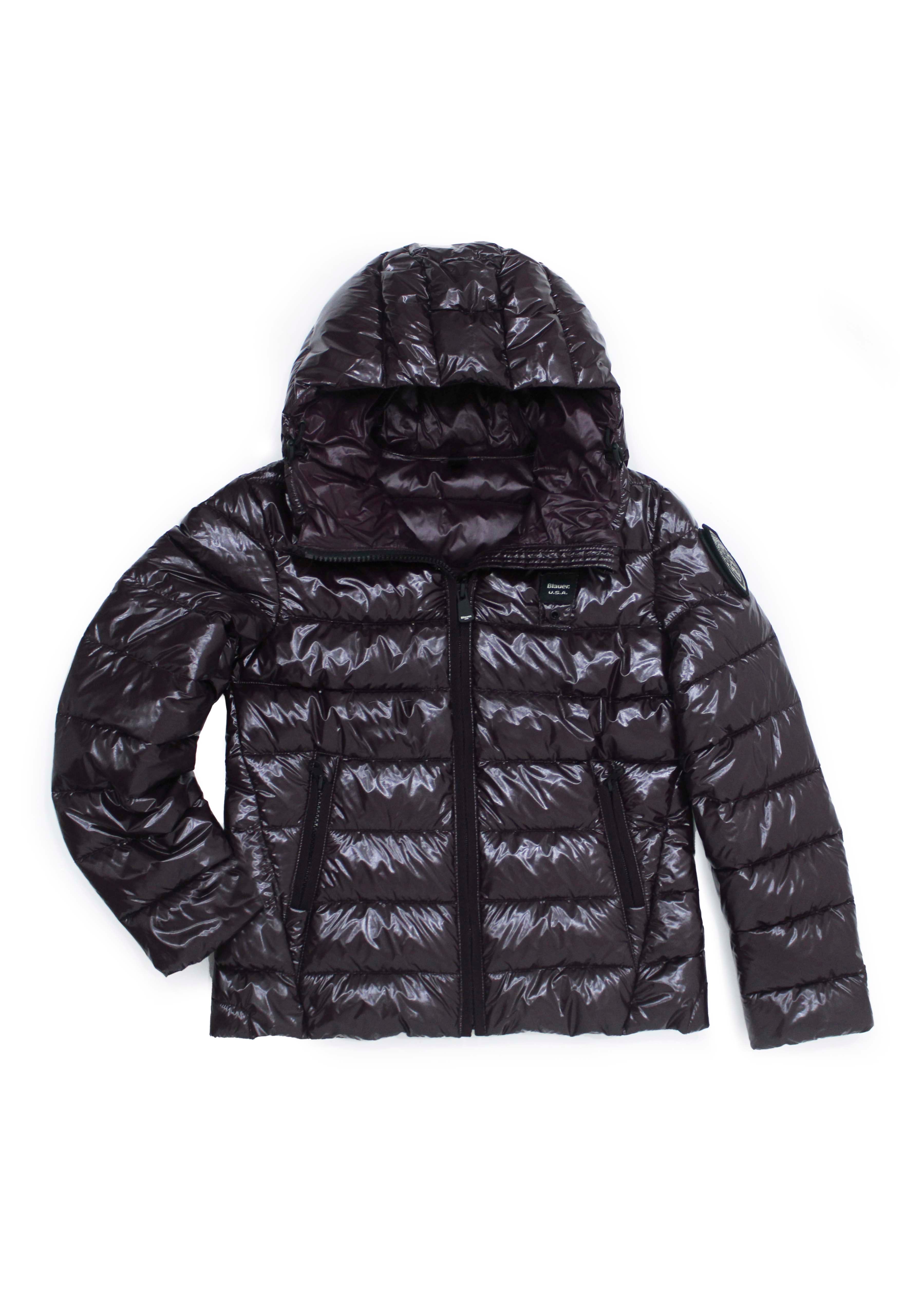 Caratteristico passante Blauer in tono cucito sul petto a sinistra e patch con velcro e Swarovski sulla manica sinistra.