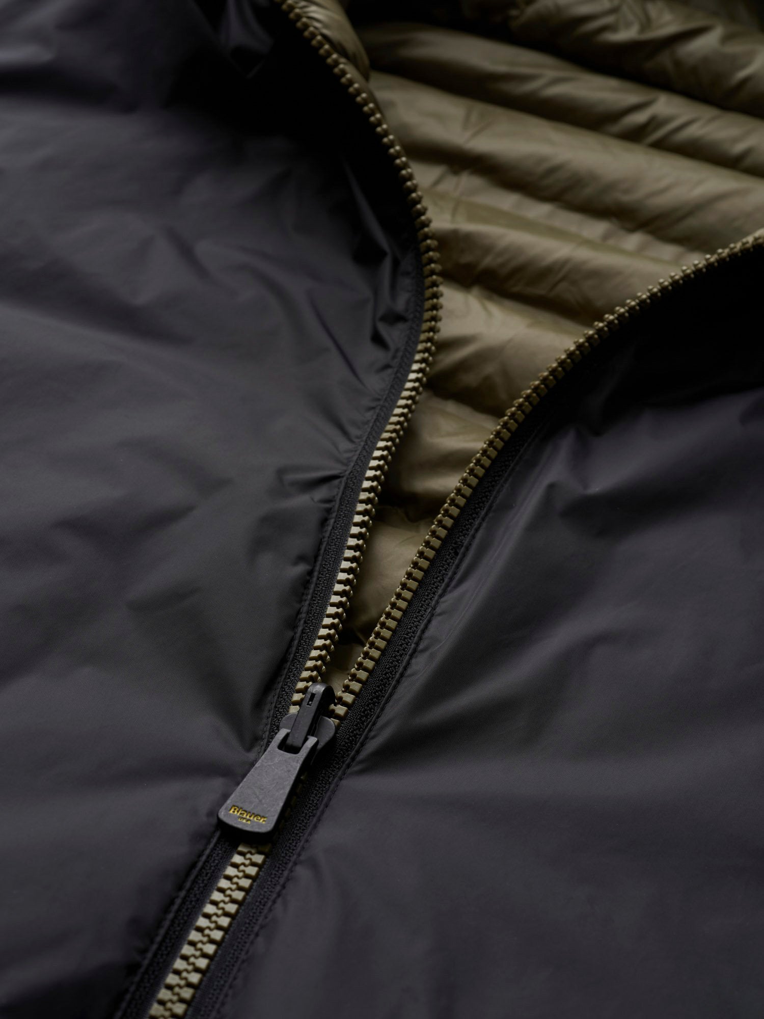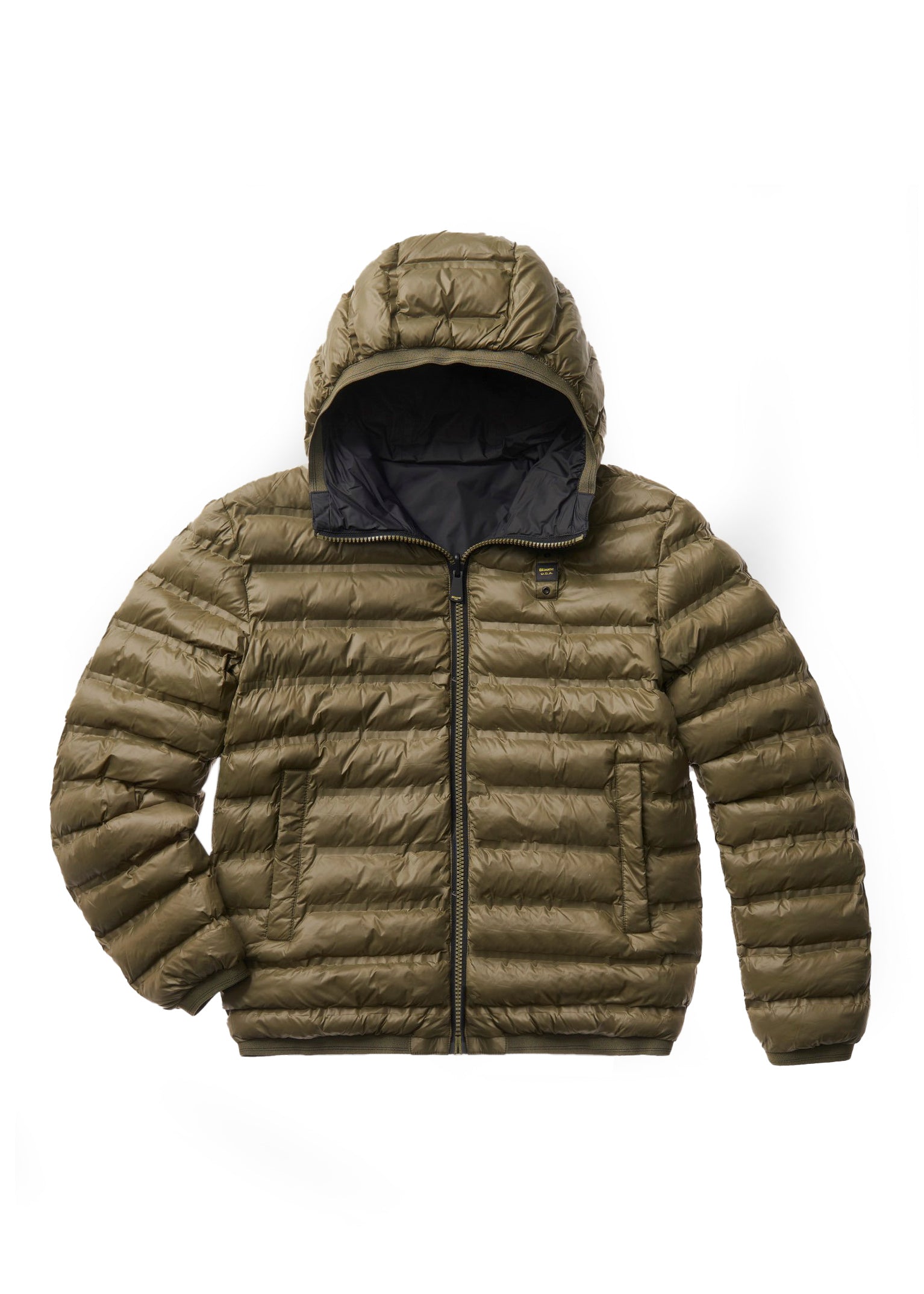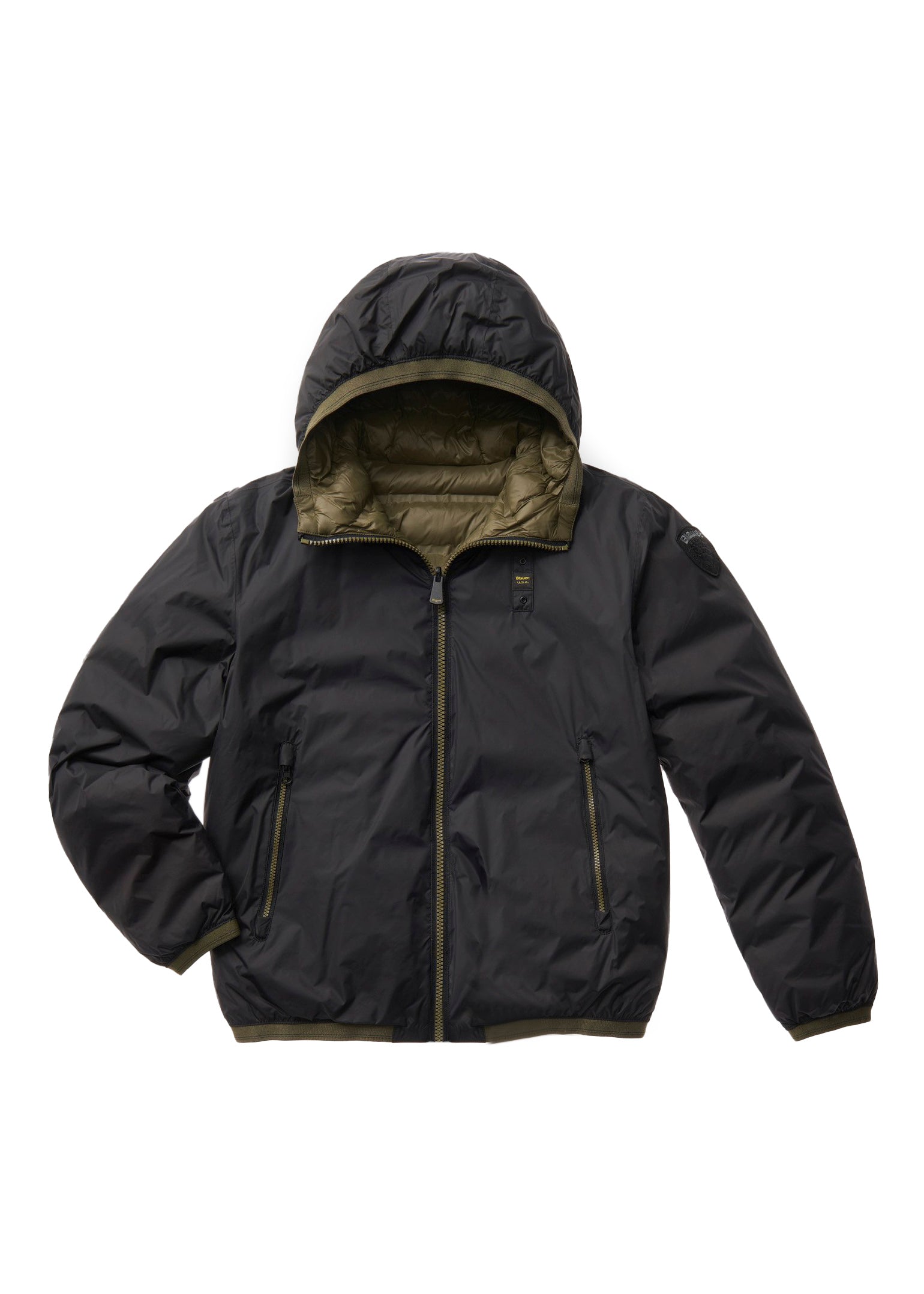 In entrambi i lati, caratteristico passante Blauer sul petto a sinistra e patch Blauer nel lato liscio.
