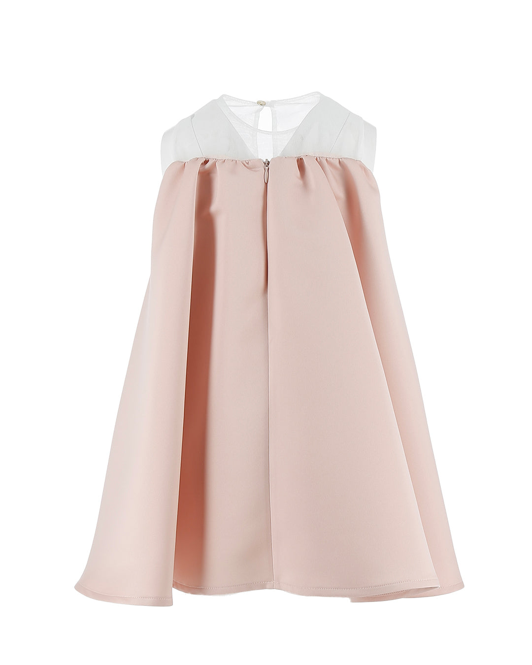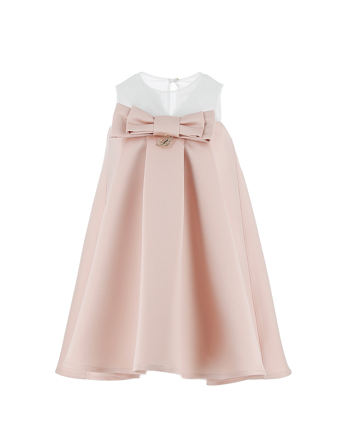 Elegante abito Blumarine Kids pensato per bambine, ideale per cerimonie, feste e occasioni speciali. Il modello presenta un raffinato design bicolore con corpino chiaro e ampia gonna rosa dalla linea fluida, impreziosita da un maxi fiocco centrale che dona un tocco romantico e sofisticato.