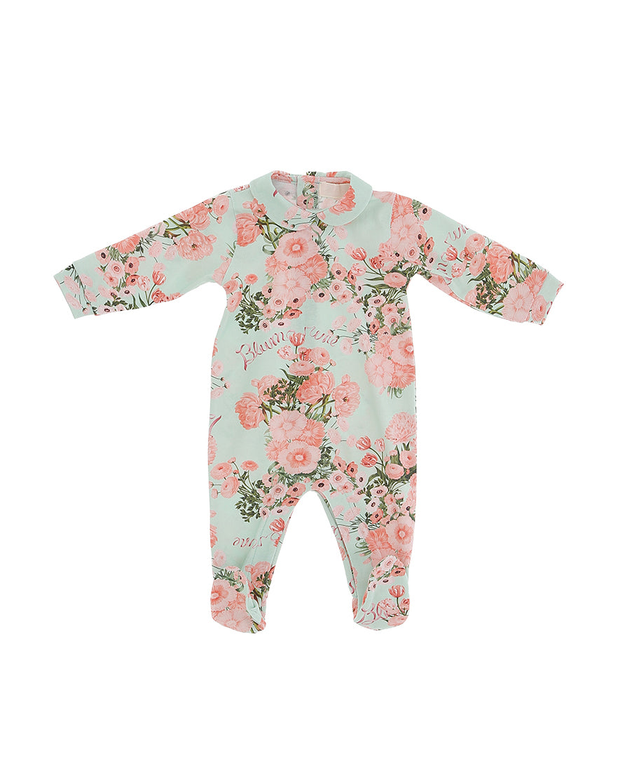 Tutina Blumarine Kids per neonate realizzata in morbido tessuto confortevole, ideale per accompagnare la bambina durante la giornata con stile e delicatezza. Il design è impreziosito da una romantica fantasia floreale all-over nei toni pastello, arricchita dal logo Blumarine integrato nella stampa per un tocco iconico e raffinato.