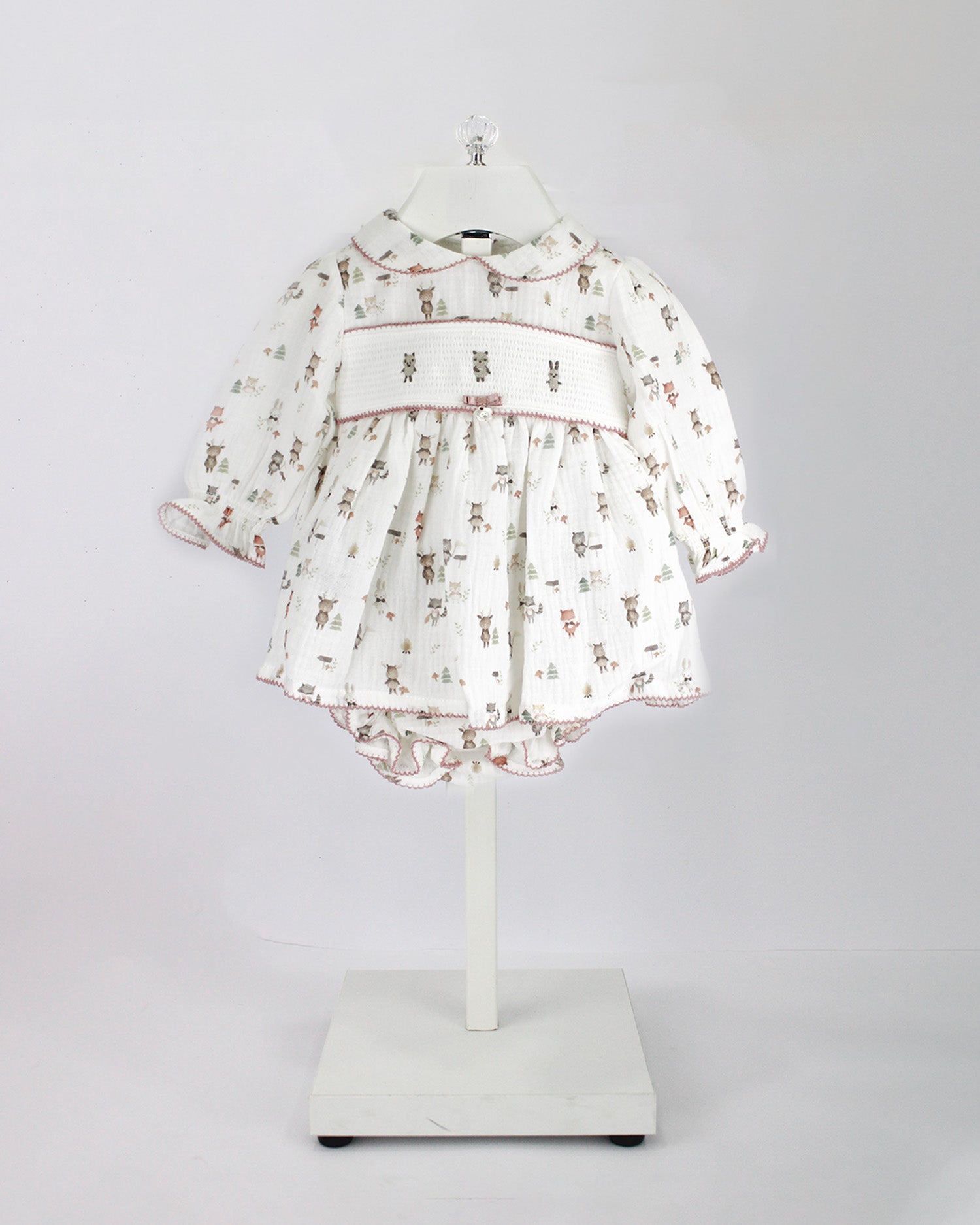 Deolinda Abito con Culotta con Bianco con Fantasia per Neonate