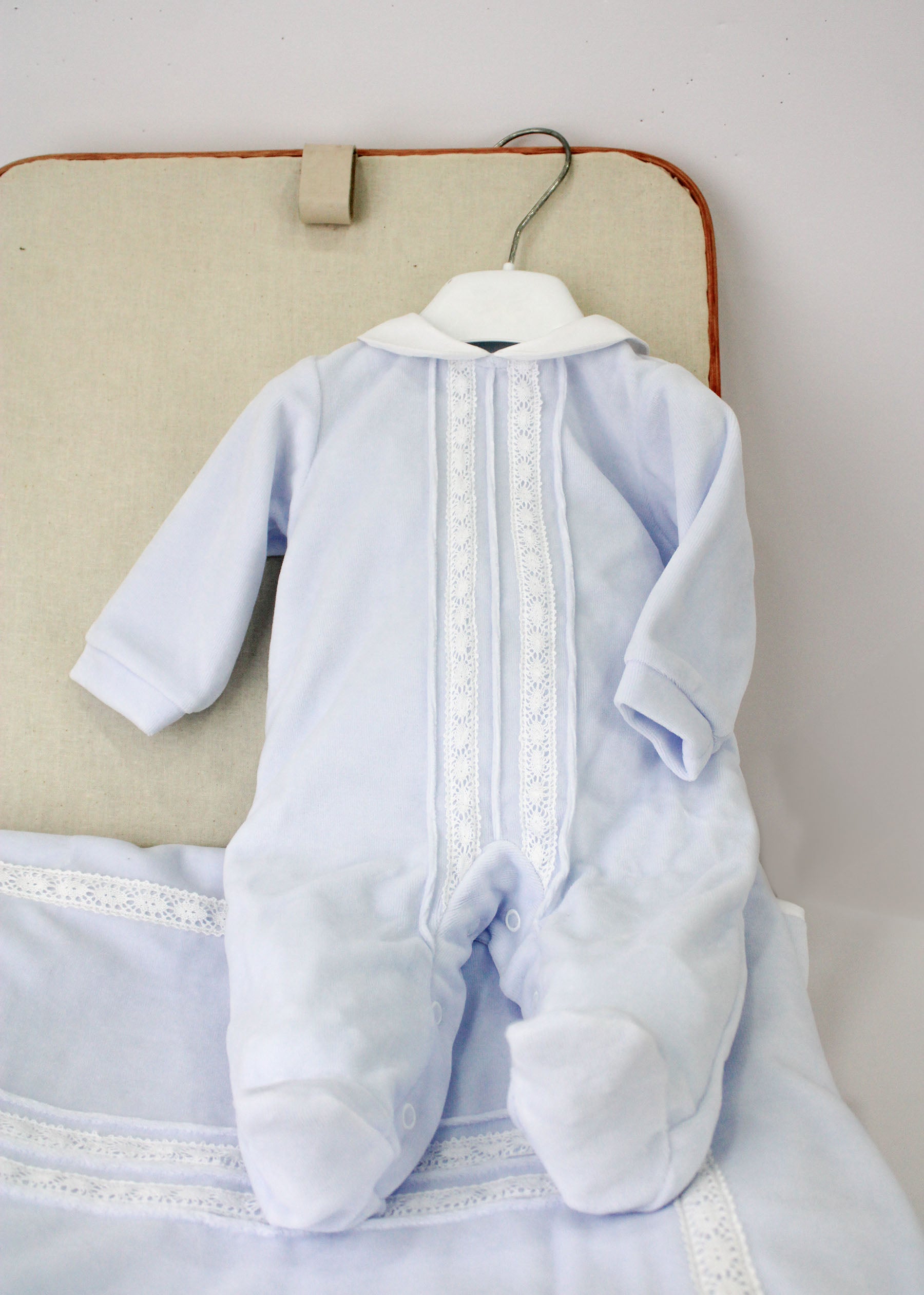 Deolinda Completo Celeste con Ricami per Neonate - Florence Kids