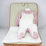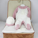 Il completo Deolinda per neonate in rosa e bianco è un set completo e tenero che offre comfort e stile al tuo piccolo. Include una tutina in ciniglia con colletto a contrasto, cappellino abbinato con orsetto ricamato, e una copertina in morbida ciniglia con orsetto e bordo a contrasto. I dettagli delicati e i ricami di alta qualità rendono questo set perfetto per il tuo amore, un must-have per ogni neonato. Eleganza e comfort si uniscono per creare un corredino irresistibile, ideale per le prime coccole.