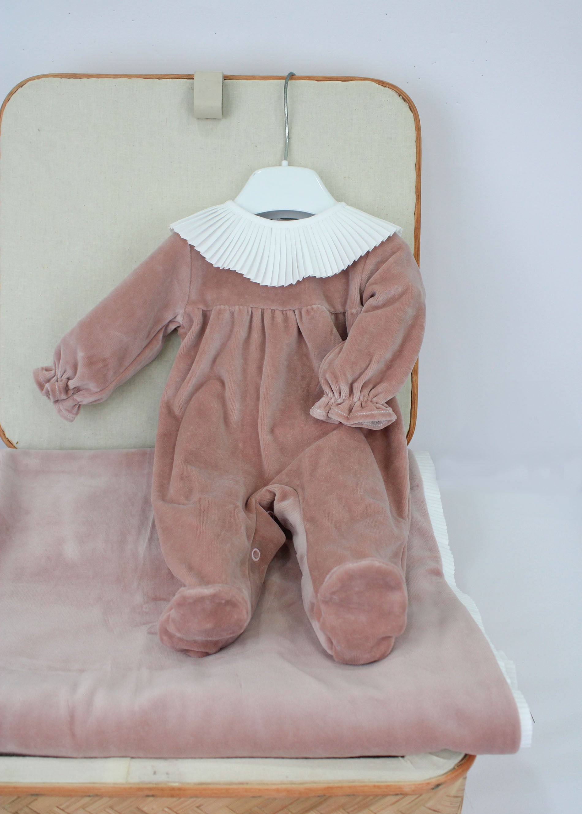 Il completo Deolinda per neonate in terracotta è l'ideale per le prime coccole. Questo set include una tutina con colletto a pagliaccio in contrasto, abbottonatura a pressione e piedini, una coperta morbida con bordino a contrasto, e un cappellino coordinato. Il delicato colore verde menta, unito ai dettagli di alta qualità, rende questo corredino perfetto per ogni occasione. Un set elegante e confortevole, che avvolge il tuo piccolo con tenerezza e stile.