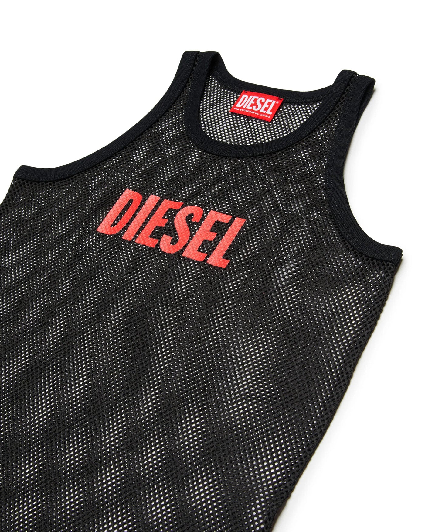 Copricostume Diesel Kids in mesh nero, ideale per completare i look mare e piscina dei bambini con uno stile sportivo e riconoscibile. Il design leggero e traforato lo rende perfetto da indossare sopra il costume durante le giornate estive.