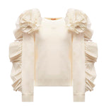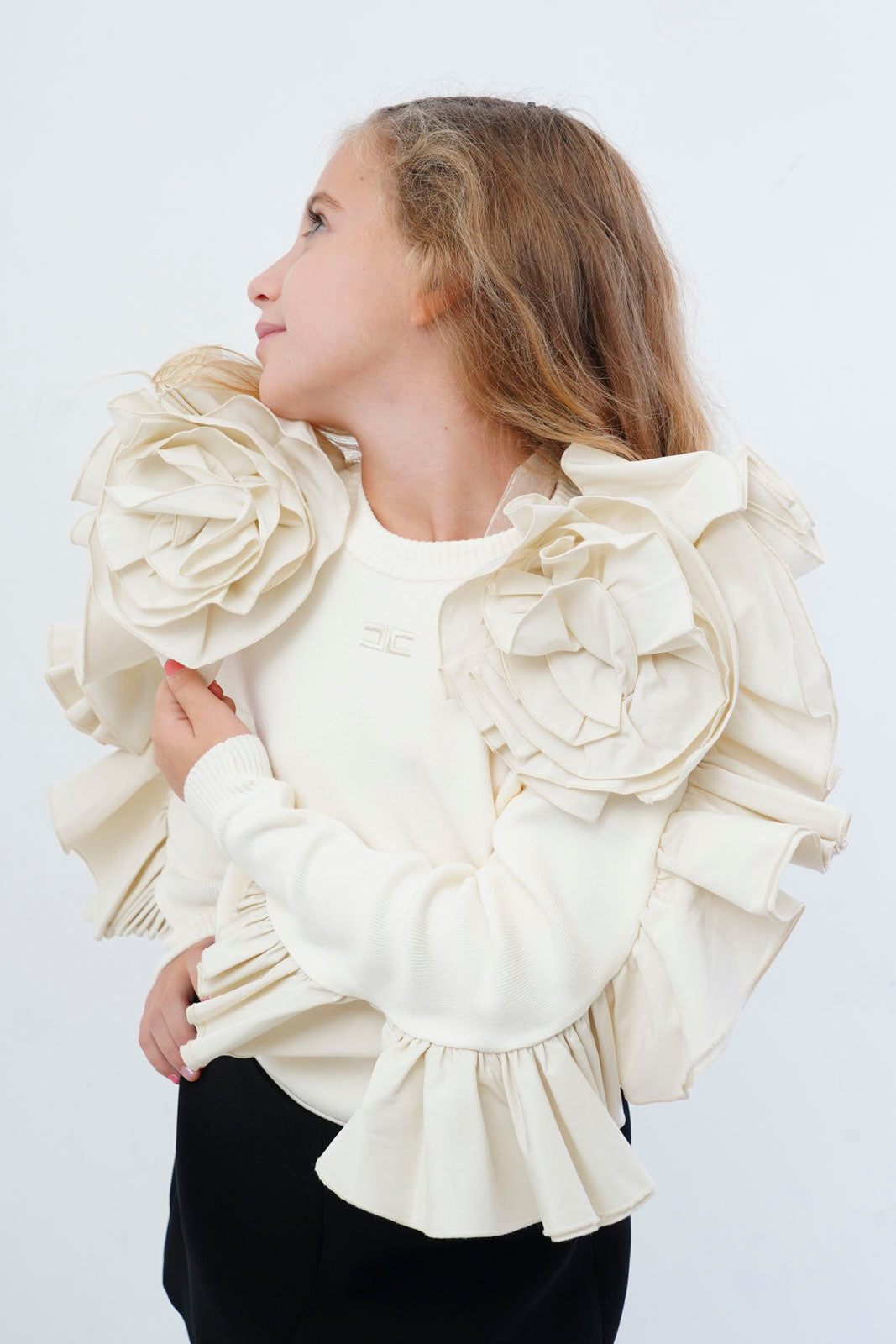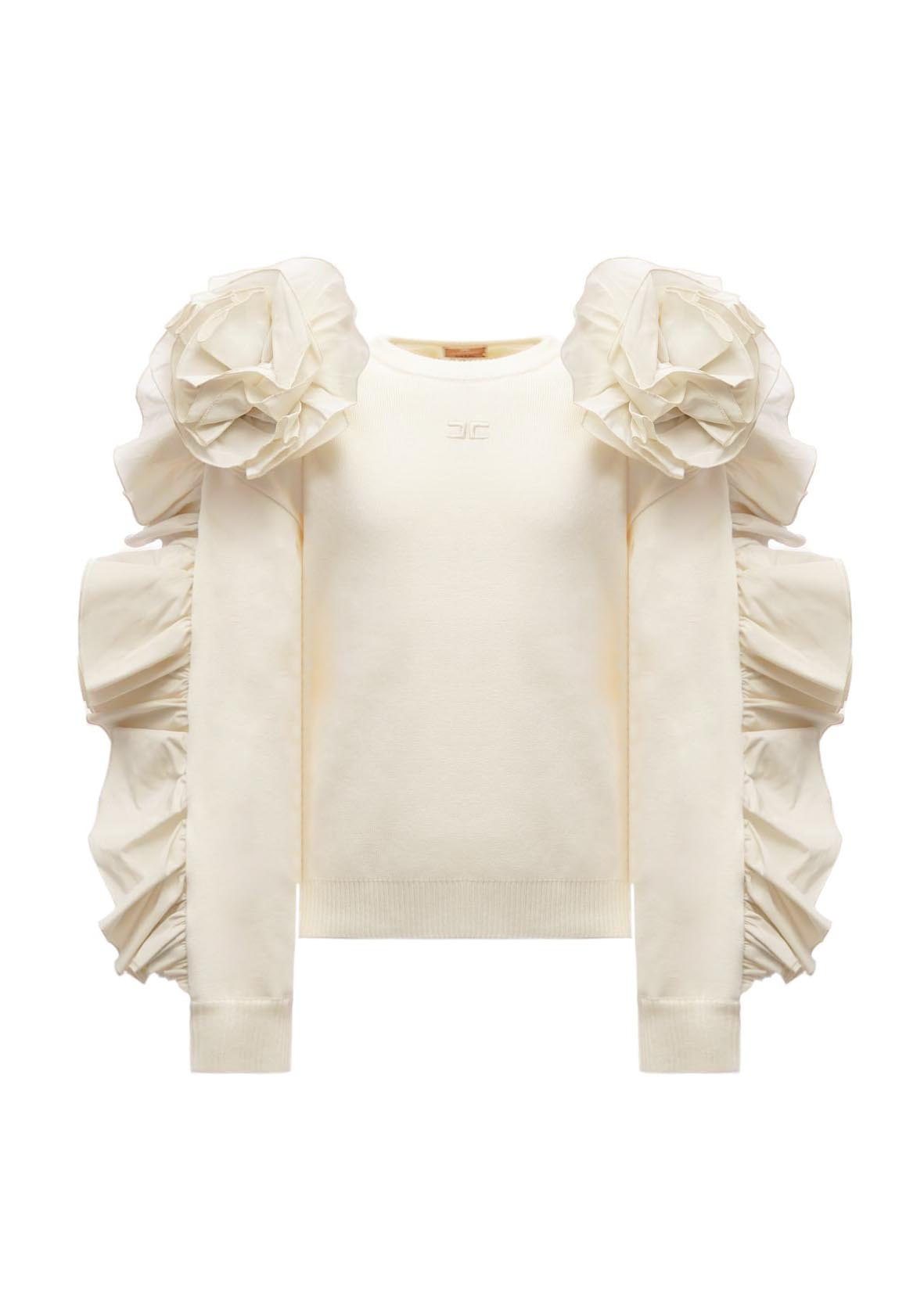 Maglia over burro in viscosa a maniche lunghe con macro rosa Elisabetta Franchi .