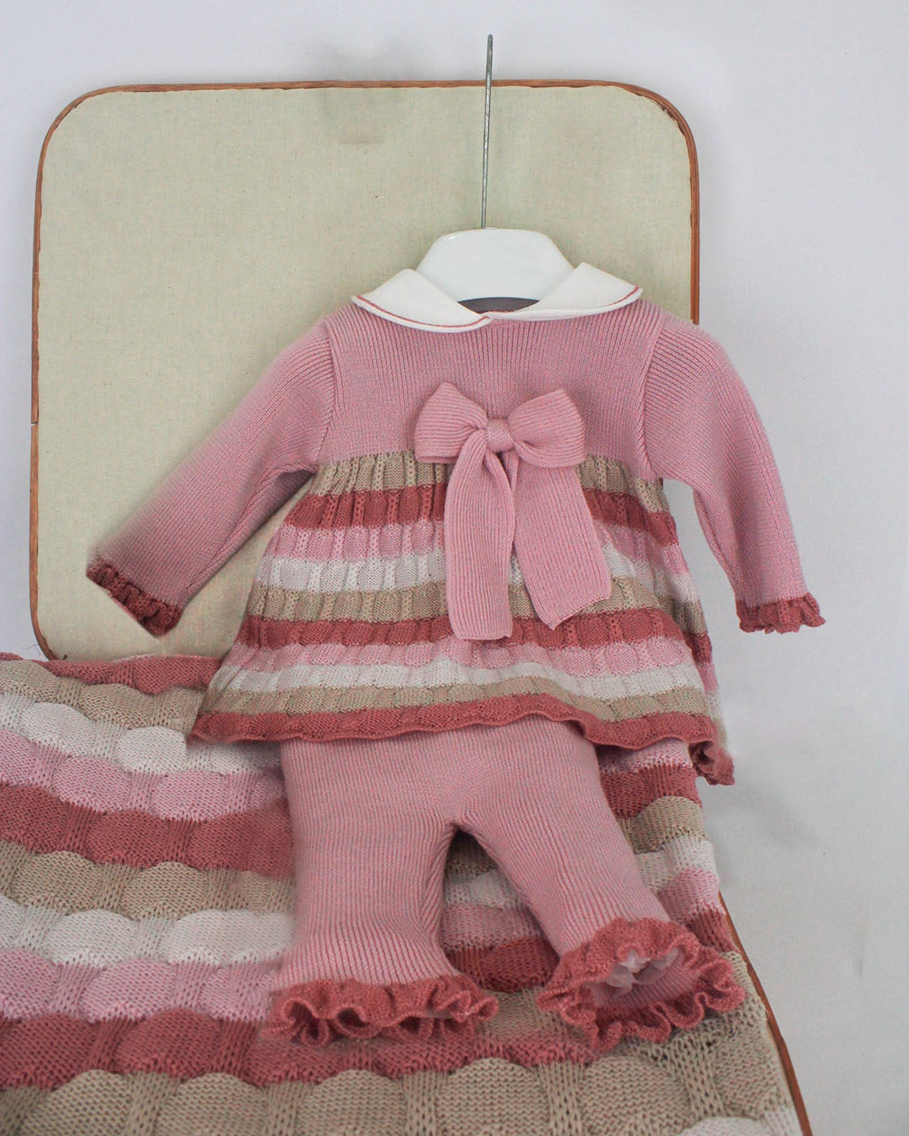 Marlù Completo Multicolor con Fiocco Rosa per Neonate
