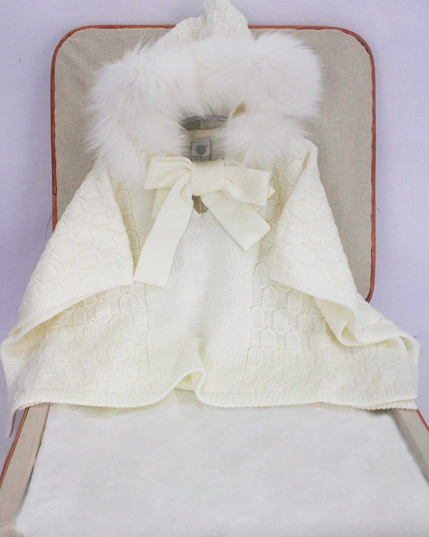 Marlù Mantella Vaniglia con Fiocco e Cappuccio per neonate