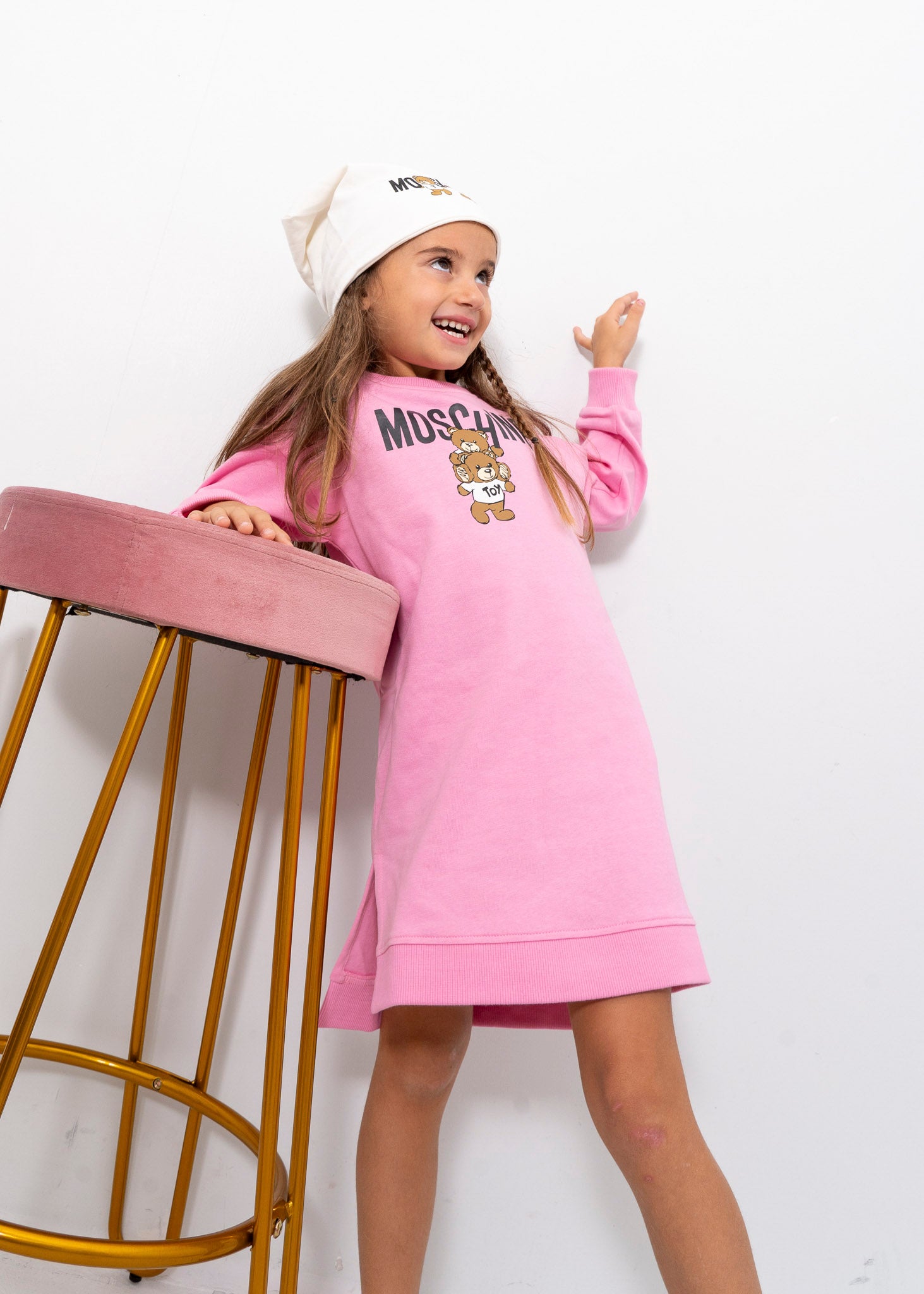 Moschino Kids Abito Rosa con Stampa Logo per Bambine (dettaglio)