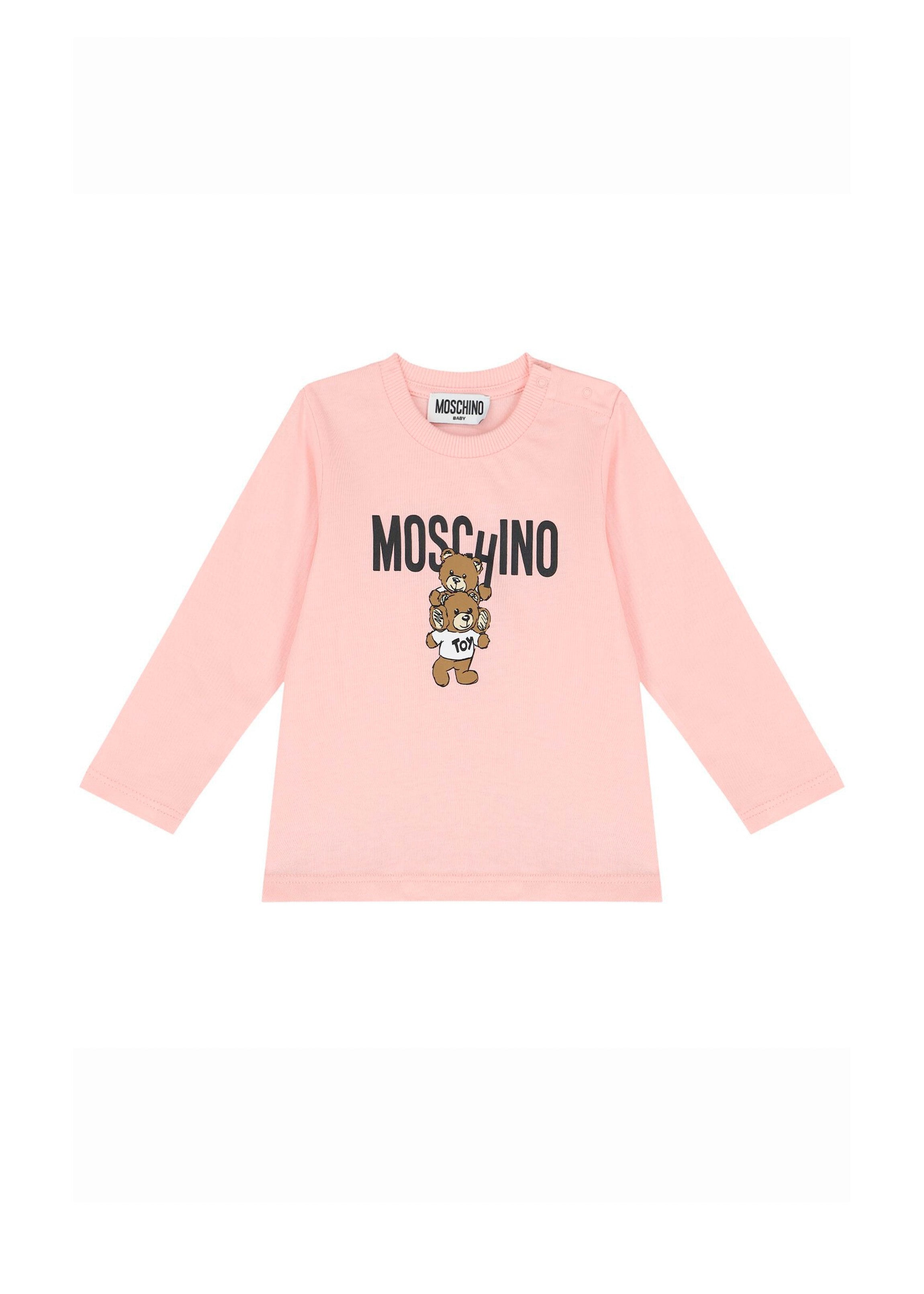 Moschino Kids Blusa Rosa con Stampa Logo Teddy Bear per Neonati
