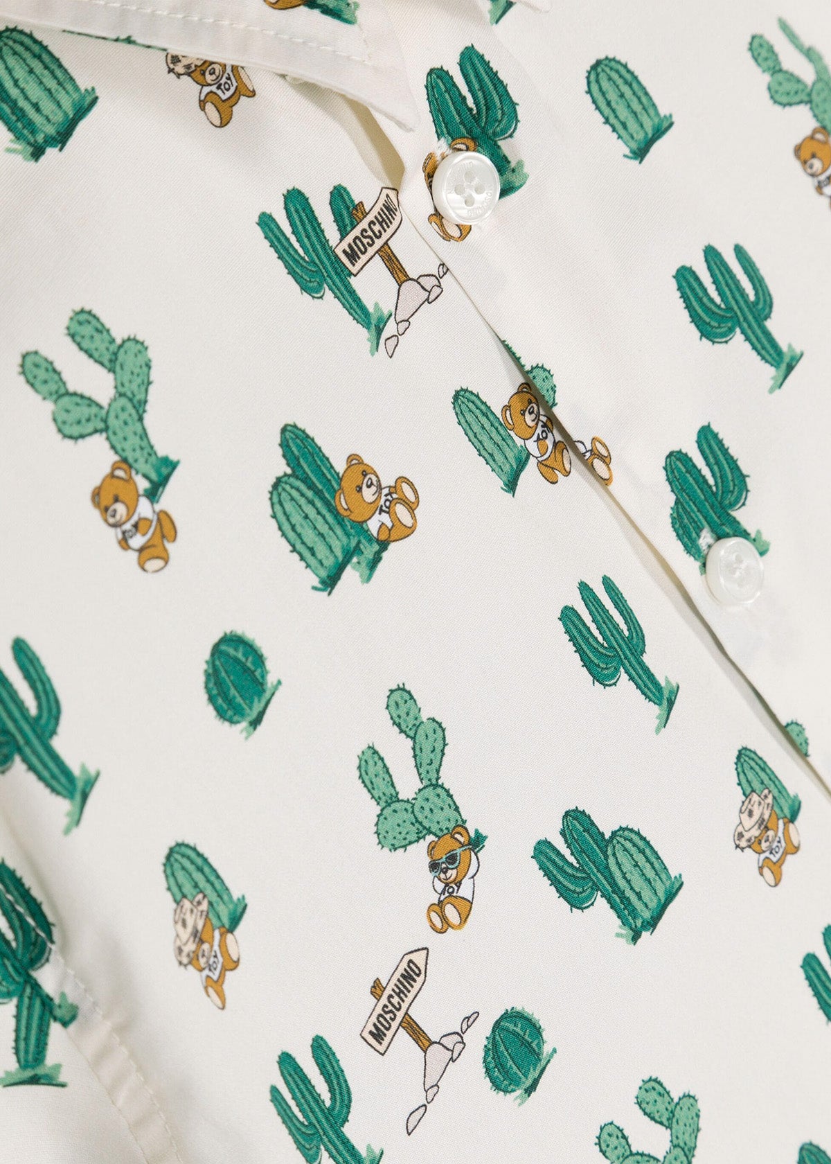 La camicia Moschino Kids con fantasia Toy Cactus per bambini combina un design giocoso con la qualità del made in Italy. Il leggero popeline di cotone assicura comfort e traspirabilità, mentre il motivo distintivo con cactus e Teddy Bear aggiunge un tocco unico. Perfetta per occasioni casual o più formali, questa camicia a maniche corte con colletto classico e chiusura a bottoni rappresenta una scelta stilosa per i giovani amanti della moda.