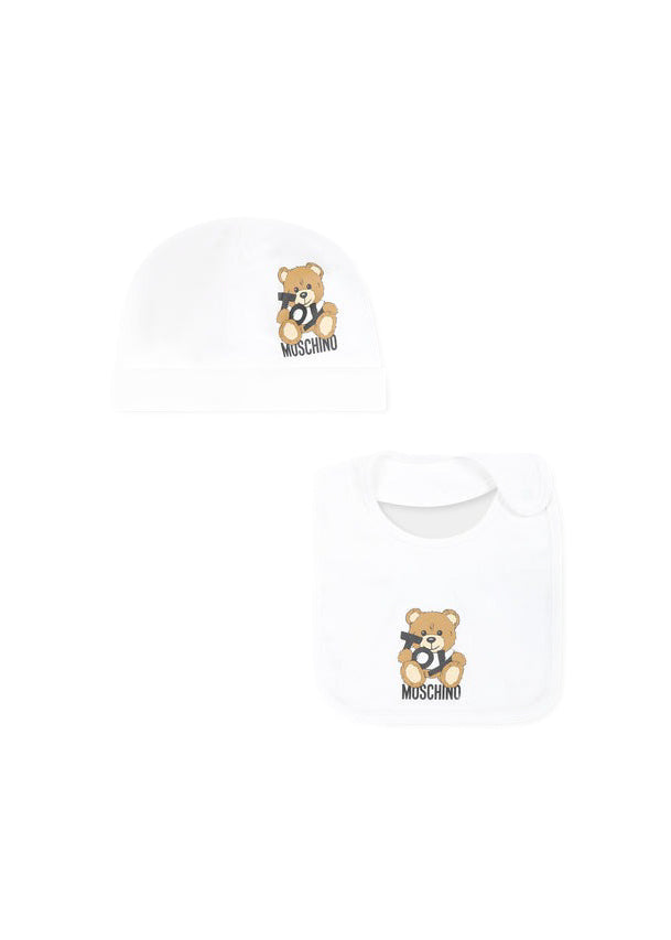 Moschino Kids Cappello con Bavetta Bianca con Toy per Neonati