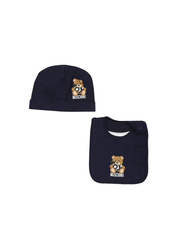 Moschino Kids Cappello con Bavetta Blu Navy con Toy per Neonati