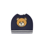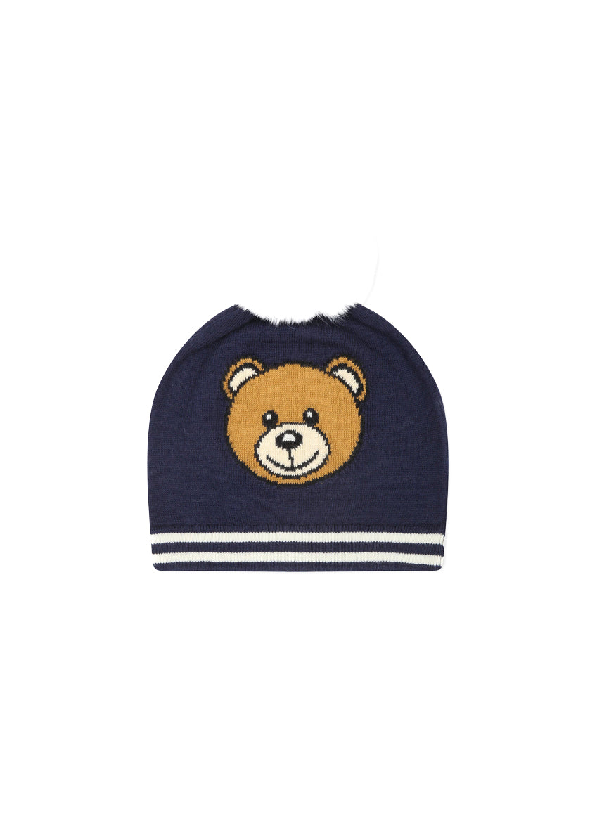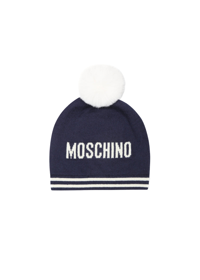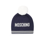 Moschino Kids Cappello in Maglia Blu Navy con Pon Pon