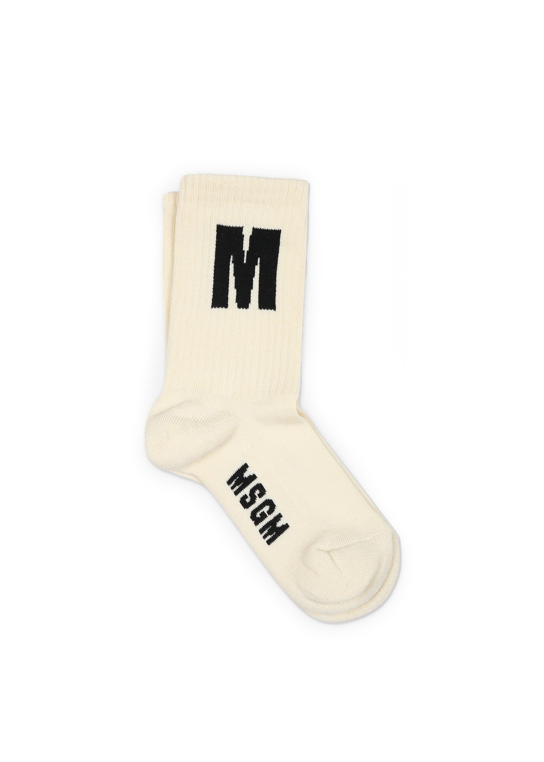 MSGM Kids Calzino con Ricamo Crema