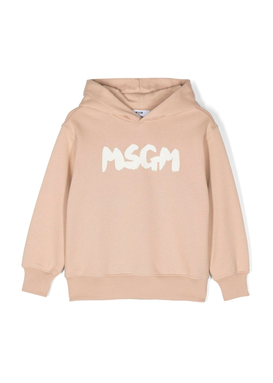 MSGM Kids Felpa Beige con Cappuccio con Stampa