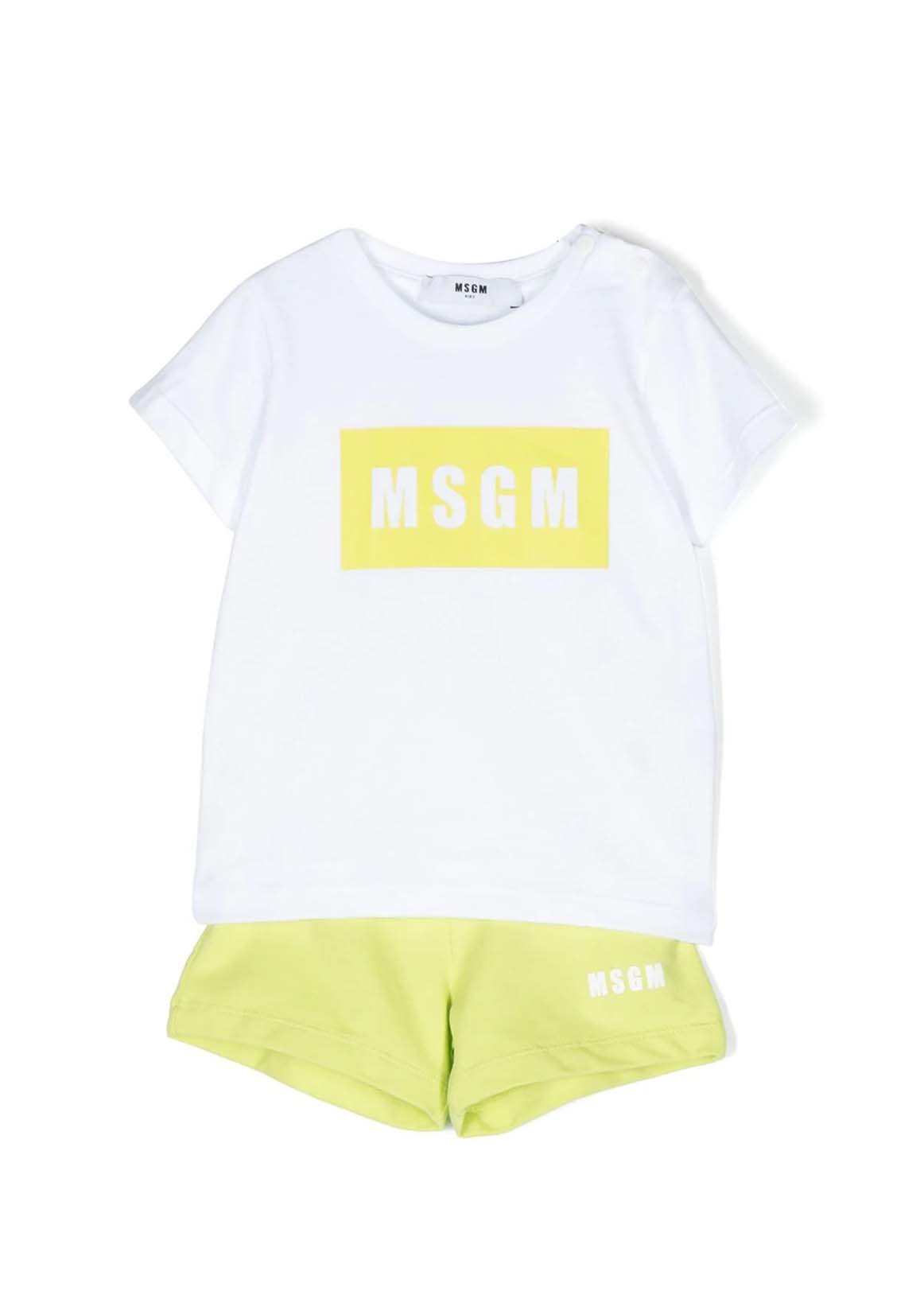 MSGM Neonato Completo t-shirt+bermuda Bianco/ Lime