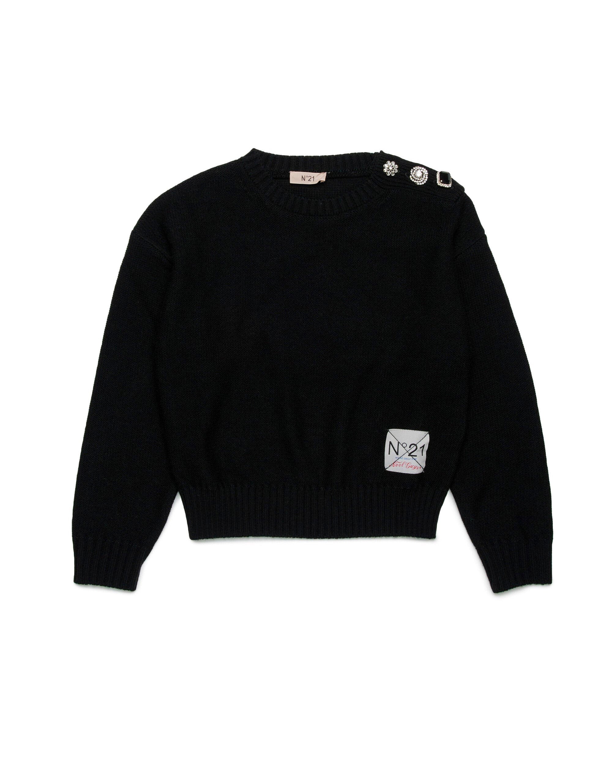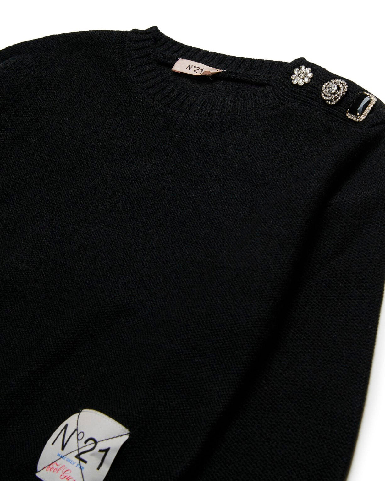 N°21 Kids Pullover Nero con Applicazione Jewel per Bambine