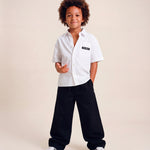 Camicia Palm Angels Kids per bambini realizzata in popeline di cotone, parte della collezione Primavera/Estate 2026. Il modello a manica corta presenta una linea leggermente squadrata con spalle morbide, per un fit contemporaneo ispirato all’estetica streetwear del brand.