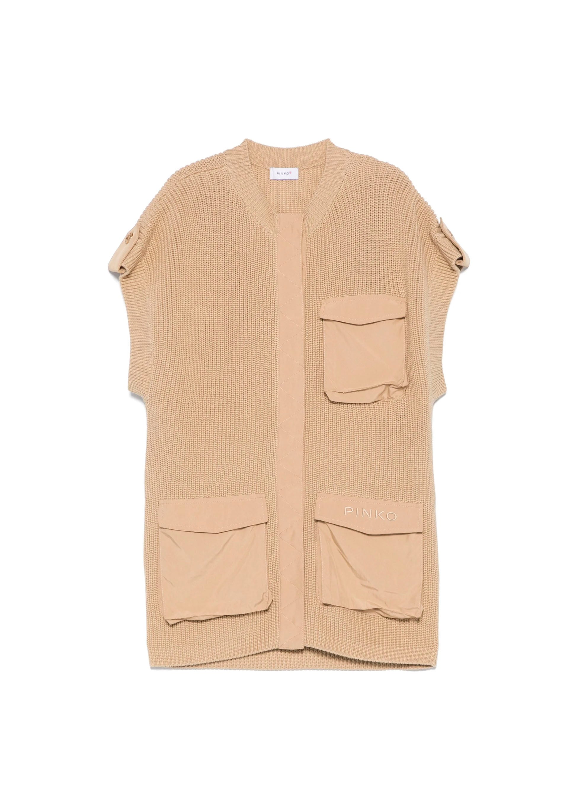 Pinko Kids Gilet Tricot Sabbia con Tasche per Bambine