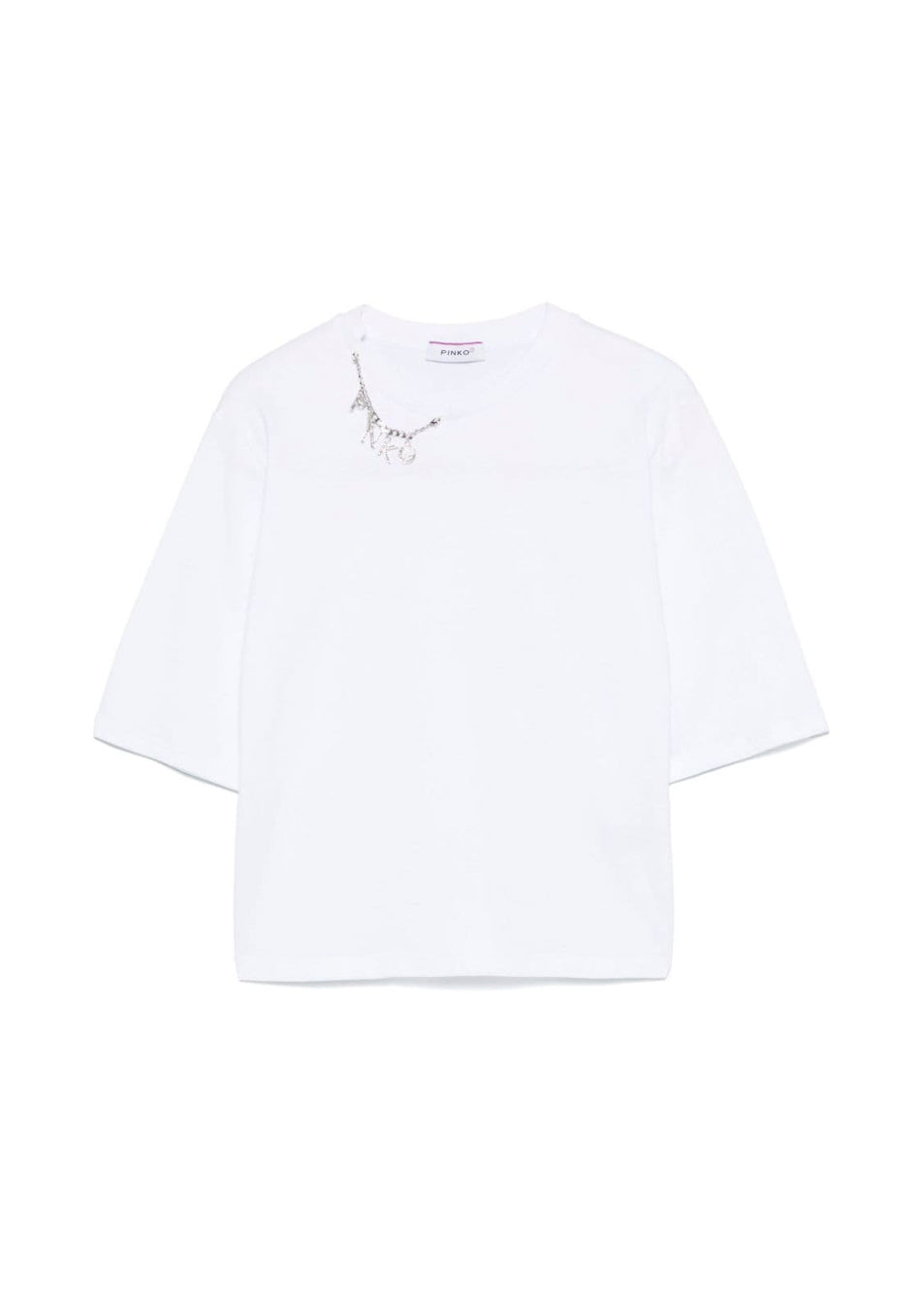 Pinko Kids T-shirt Bianca con Decorazione Strass per Bambine