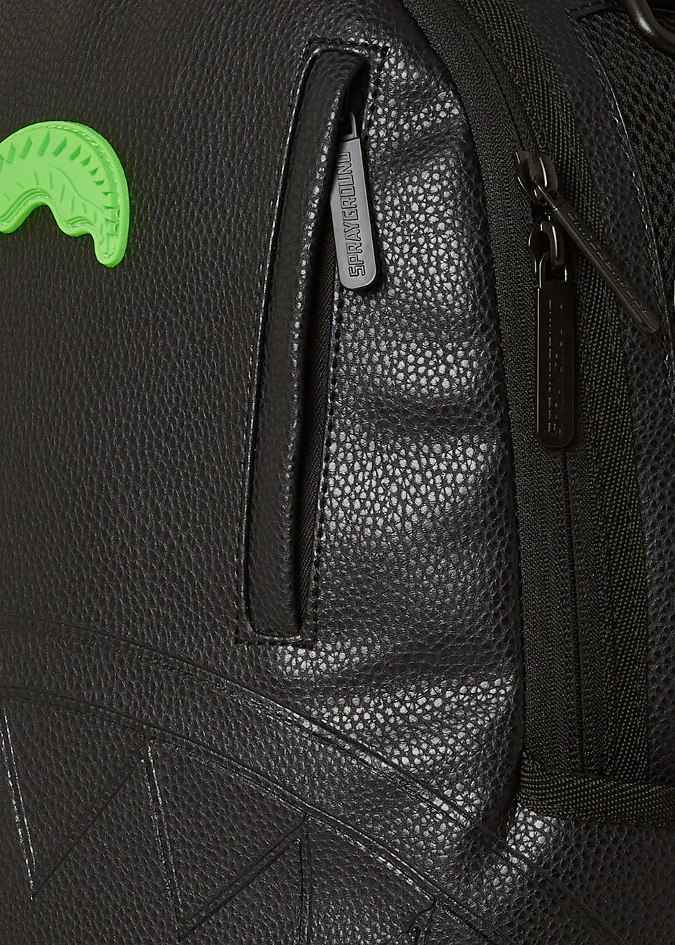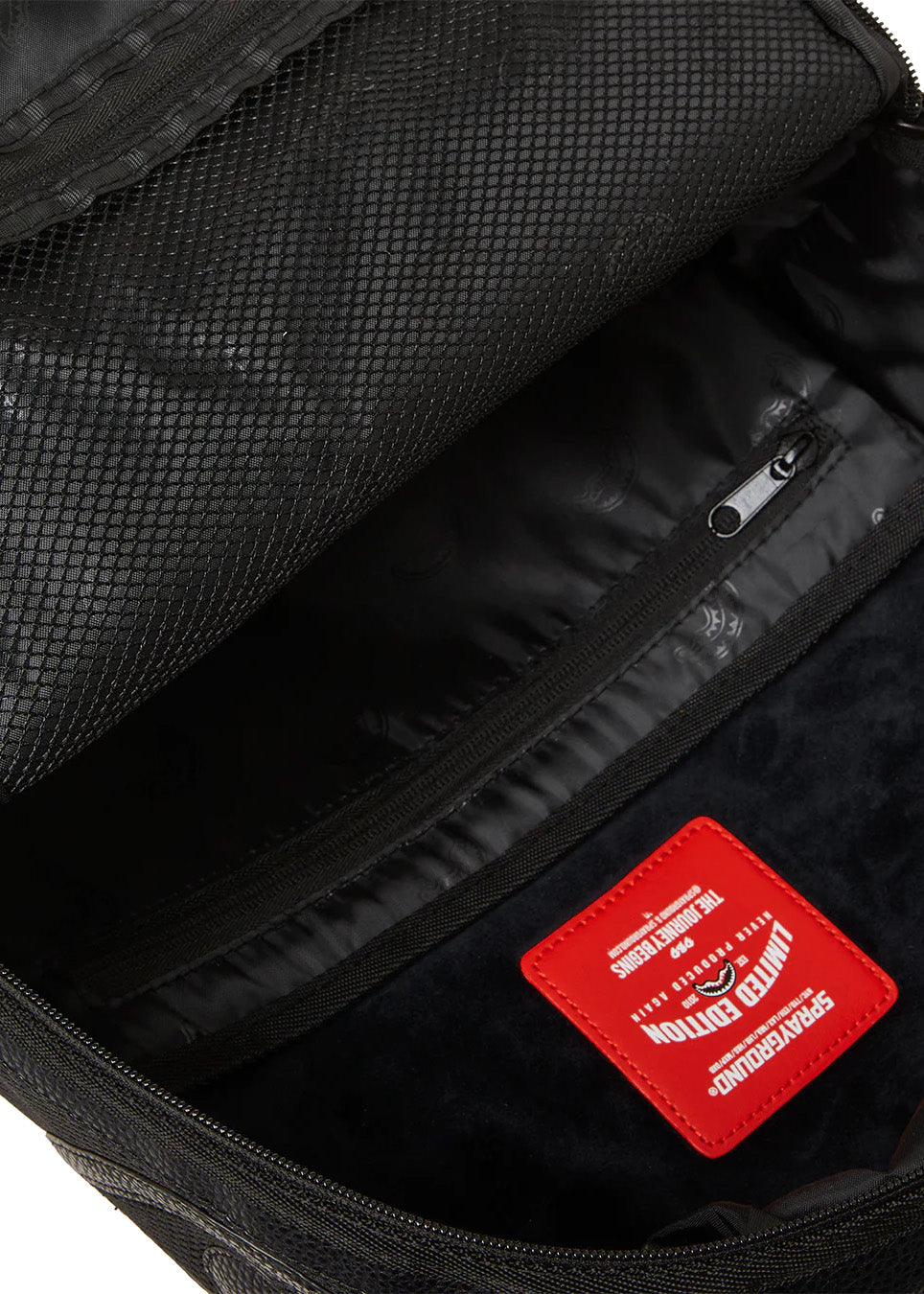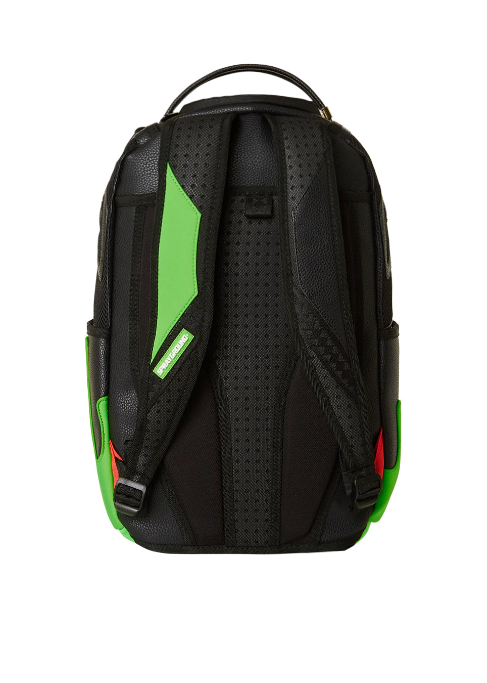 Tasca frontale con cerniera • Tasche laterali • Tasca nascosta con cerniera • Scomparto separato per occhiali da sole in velluto • Imbottitura posteriore ergonomica in rete • Cinghie regolabili per dimensioni personalizzate • Cerniere dorate con hardware in metallo • Badge "Sprayground Authentic" in metallo • La manica posteriore scorrevole si collega al bagaglio a mano per avere le mani libere