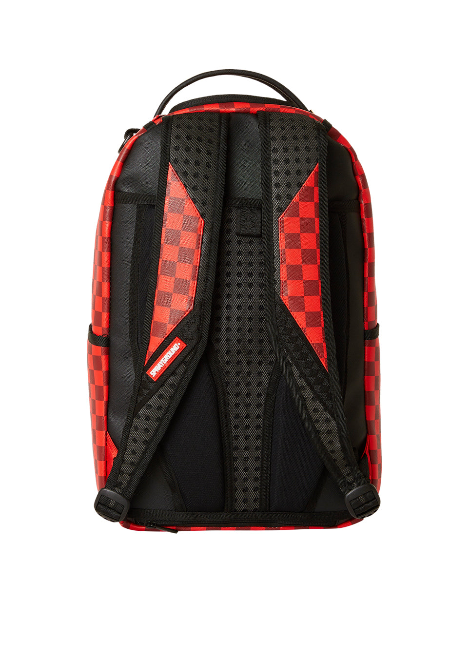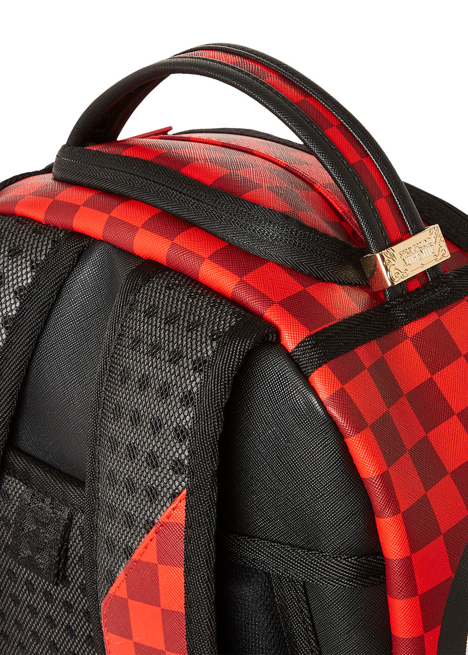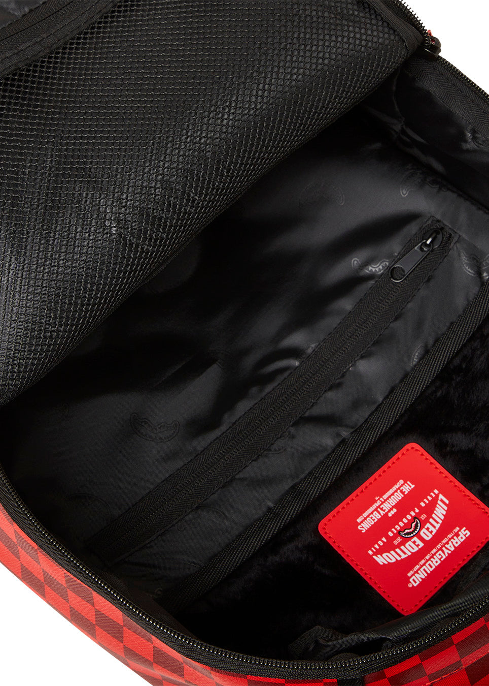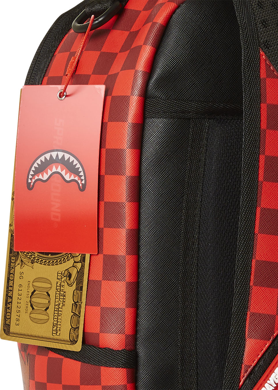 Tasca frontale con cerniera • Tasche laterali • Tasca nascosta con cerniera • Scomparto separato per occhiali da sole in velluto • Imbottitura posteriore ergonomica in rete • Cinghie regolabili per dimensioni personalizzate • Cerniere dorate con hardware in metallo • Badge "Sprayground Authentic" in metallo • La manica posteriore scorrevole si collega al bagaglio a mano per avere le mani libere